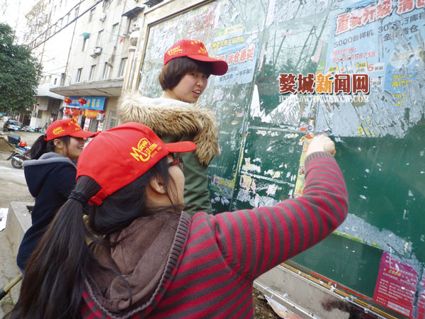 近日,城北街道社区党委、妇联和团委联合浙江师范大学青年志愿者,对社区宣传窗上的“牛皮癣”进行了清除。面对这些顽固的“牛皮癣”,大家拿着抹布、清洁球、小铲子“轮番上阵”,最终令宣传窗恢复了整洁、明亮的外观。