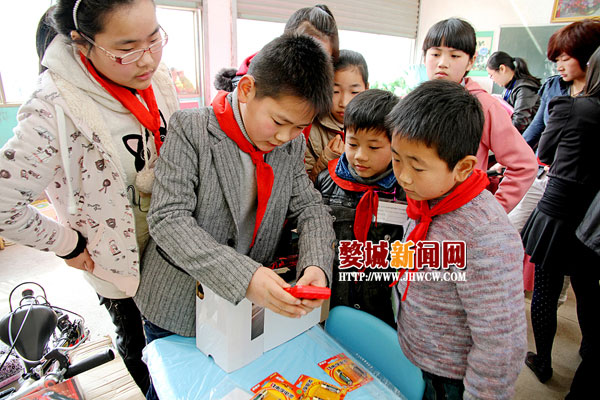 3月12日上午,环城小学6名学生带着遥控赛车、吉他、学习用品等许多礼物来到了金华市英达民工子弟学校交“作业”。据了解,环城小学全校的孩子们收到了一份特殊的寒假作业——“圆梦行动”,环小大队部收集了金华市英达民工子弟学校孩子们的2013新年愿望,一个中队认领一个或几个新年愿望,通过寒假的时间,开展小队活动、中队活动,在市区开展义演、义卖、以及募捐等实践活动来完成心愿。当天上午,环城小学的学生们交出了一张漂亮的“答卷”,完成了民工子弟学校孩子们的36个愿望。