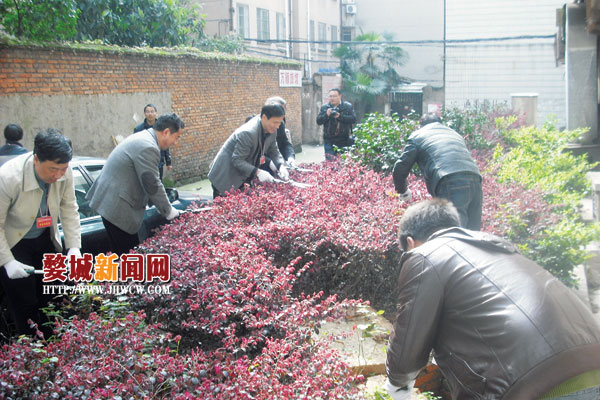 3月25日,婺城区委组织部13名在职党员和城中街道25名在职党员一同走进城中街道西市街社区,开展党员“公益日”活动。活动中,大家对后街5号及通渠巷11号的住宅院内两个巨型绿化带灌木丛进行了修枝剪叶,对中山路花坛的杂物进行清理。