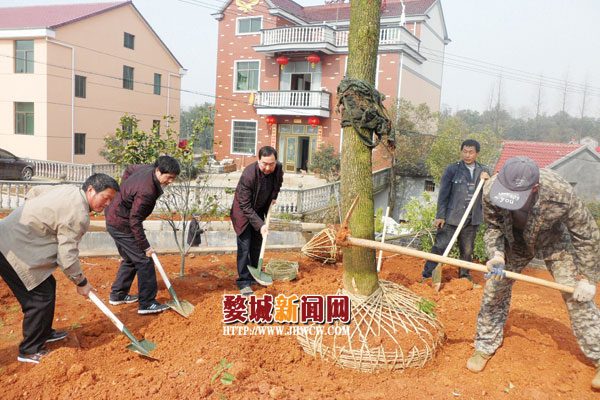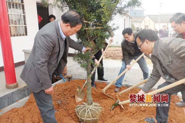 日前,婺城区土管局到结对村琅琊镇东畈村开展植树活动,与琅琊镇干部、东畈村党员干部及当地群众一起挖坑、扶苗、培土、浇水,栽下杨梅、香樟、桂花、罗汉松、桃树、红叶石楠等200多棵树木,这些树木将为今年争创秀美村的东畈村增添绿意。