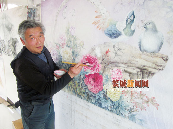 后来,听朋友介绍说从事珍珠养殖业能赚到更多的钱,周宗泽心动了。“当时心里就觉得做生意肯定能挣到钱,也不用想现在这样每天都要干力气活。”没有过多的考虑,周宗泽便放弃了手头的油漆工作,转行做起了珍珠生意。然而,事情并没有像周宗泽想象的那么顺利。“头几年还好,收入不错,可到了后来,行情越来越差,投进去的钱都亏空了。”回忆起当时做珍珠生意的事,周宗泽很是后悔,“做生意风险太大,还不如踏踏实实地干油漆工作。”生意上的失败让周宗泽再次拿起了画笔,而且一画就是15年。