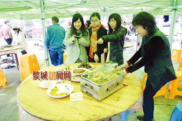 今天的厨艺大赛在农家乐老板们看来,这不仅是比赛,更是一次难得的现场展示推介。来自仙源湖畔小同村的得水山庄要推出的是由15道菜组成的山村宴,这15道菜不仅原料取自山村,就连烹饪方法也是从民间收集来的。“去年我的山庄开始营业,生意还不错,我家里一次能接待200多人用餐,60人住宿······”叶献平趁炖石蛙煲之时,向记者介绍自家山庄,而对于一年能收人多少,却笑而不语。“欢迎大家到我们得水山庄做客”。最后叶献平还不忘向现场的游客发出邀请。