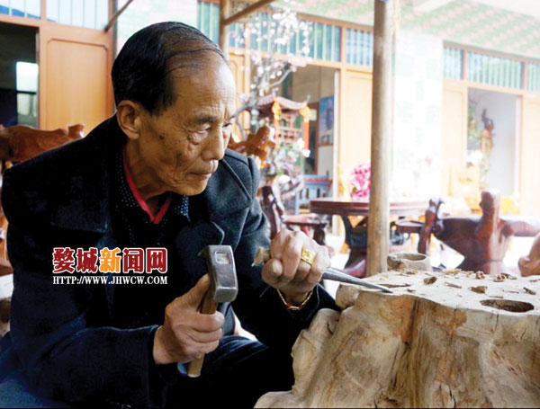 七旬老汉“玩转”根雕梦