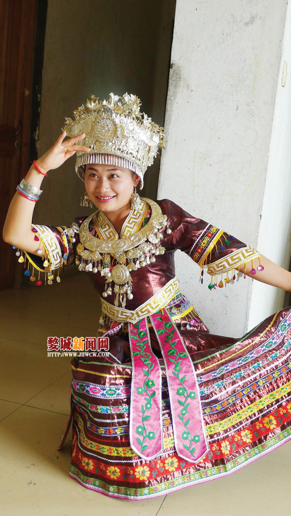李丽萍回忆说,第一次参加社会性演出,穿着苗族服装特别显眼,上台前就被人拉着拍合影,一会儿坐着,一会儿站着,她耐心配合着每位观众,“脸都快笑僵了”。后来,李丽萍不断收到演出邀请,“现在台风好多了,上台不紧张,发挥很少失常。”李丽萍说。