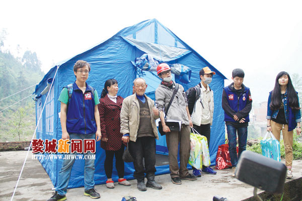4月24日,许诺踏上了去成都的火车,辗转来到雅安市芦山县,加入到了地震救灾的志愿者队伍。“到震中去,到最需要帮助的灾民身边去。”得知雅安地震的第一时刻,许诺便开始准备行囊,从网上学习相关急救常识,为前往灾区做准备。
