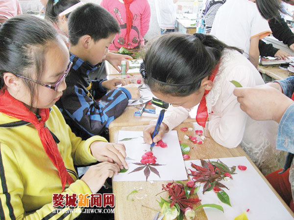 日前,罗店小学开展了以“花卉文化”为主题的“植物贴画”活动,同学们介绍落下的花瓣、树叶的用途,增加课外知识量;采集树叶、欣赏树叶画、设计制作、展示评议。通过此次活动,不仅培养了学生的观察能力、动手能力和审美情趣,还激发学生热爱大自然,热爱生活,发现美、创造美的心灵。