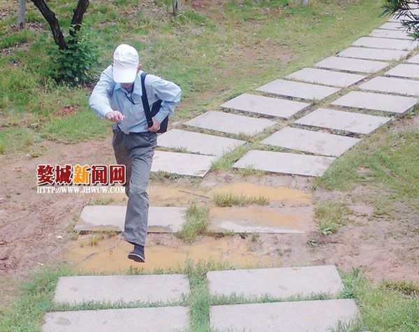 5月16日,笔者在连接婺州公园与八咏公园的一条石板路上,看到原本好好的石板路居然少了4块石板,由于刚刚下过雨,既形成了4个小水坑,路过的行人只能从中跨过或者走绿化带绕过它。75岁的陈树文说:“这4块石板已经消失2个月了,我每天早晚散步都从这儿经过,看到不少人踏入坑里,相关部门应该早点装上新石板。”