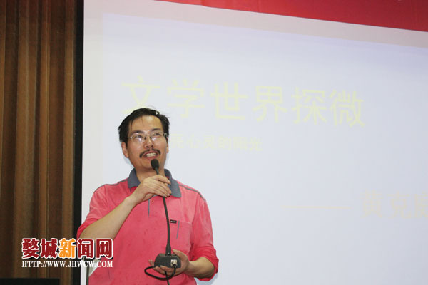 日前,微型小说家黄克庭做客金华二中,以“文学是心灵的阳光”为题讲述他的文学故事,黄克庭自谓生在农村,长在农村,初中、高中都在乡村度过,当年诸科成绩以语文最差,考大学时他的语文成绩仅有45分。1978年,考上浙师大,诸多志愿中,最为中意的是从医,谁想未遂,既而分到物理系,似乎与文学分道扬镳,实则殊途同归,终有聚时。毕业后,分到义乌市义亭中学教书,十五年如一日,当年文学梦一朝醒来,跳槽到报社当记者,如是又十五年,“现在想来,在学校教书的日子也是颇为自在,今天有机会能够回到同学身边真的很高兴。”黄克庭说。