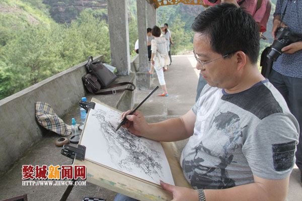 图为书画家在九峰山进行写生创作。