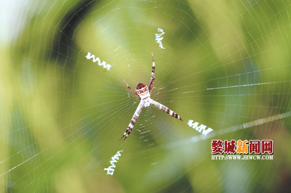 6月5日清晨,金华九峰职校的两位老师,在学校操场边的茶树上发现了一些会“写”英文字母的蜘蛛。随后,这些蜘蛛引来众人围观。现场一位老师幽默地说:“看来熏陶是有效的,到底是学校,连蜘蛛都会写字母了。”还有人笑言:“这肯定是蜘蛛写的情书,向心仪的对象进行表白呢!”