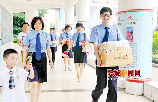 近日,婺城区人民检察院的9名干警带着满满的小学生课外读本、铅笔等文具来到站前小学,和小朋友共建“班级书屋”。