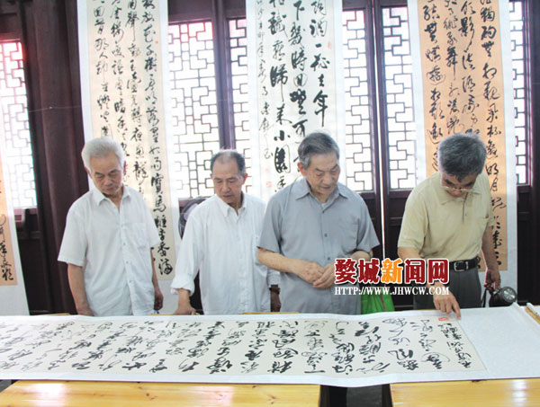 6月18日,陈兴润书画展在婺城举行。诸多书画家联袂而至,争睹佳作,都说字如其人,端的大气象,大手笔。著名书画家郑竹三谓其“小字流畅遒媚,大字厚重跌宕”,诚非虚言。陈兴润原任金华县人武部政委,金华县常委,退休后先后任金华县和婺城区书法家协会主席。二十年来潜心研习书画,左右手皆善书,其书法风格厚重、跌宕、大气,绘画构思奇特、水墨华滋,意境悠远,尤以墨荷见长。其艺术境界与人生境界相契合,可谓“技在手、能在身、思在脑,力透纸背;艺为心、道为骨、书为表,从容生活”。与他相交二十余年的书友称他是勤奋的书法家,每到他家过访,总见一大篓稿纸,宣纸都成了黑纸。是故呈显出新意于法度之中,寄妙笔于豪放之外。