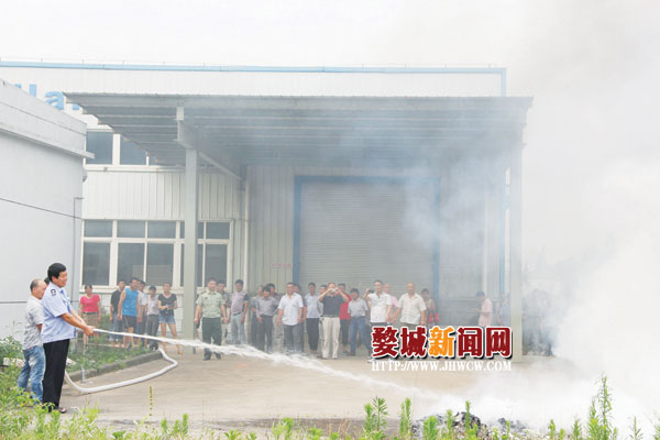 6月21日上午,位于白龙桥镇的浙江米兰诺皮革有限公司里,浓烟滚滚,一群特殊的“灭火队员”赶来。其实,这里并没有发生任何火灾,而是开展了一次消防演练,镇里特意邀请了婺城区消防大队的专家为80多位村、社区、超市的治保员和白龙桥镇各管理处的安全分管员现场授课,手把手地教授大家如何使用灭火器,如何使用消防栓,如何将火灾损失降到最低。