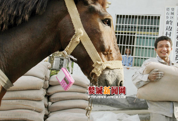 近日,笔者在塔石乡岭边村口看到了一匹特殊的骡子,它脖子下挂着一只迷你音乐播放器,在其运输沙石建材途中一路播放着音乐。