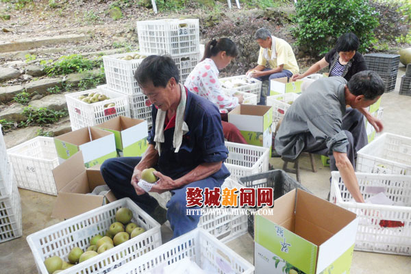 7月3日,记者在塔石乡余仓村看到,村民们正忙着给新鲜采摘下来的翠冠梨进行装箱。据了解,余仓村翠冠梨种植面积达100亩,每年7月初开始采摘,种在高山上的余仓翠冠梨肉质细腻,水分充足,口感极佳,深受消费者青睐。这两天每天要采摘2000公斤左右的翠冠梨运往金华农产品批发市场,批发价每公斤达6元。