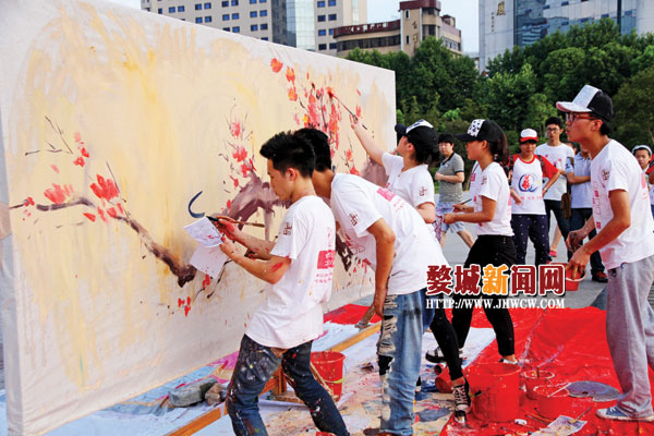 为响应中国梦主题,体验创业艰辛,7月15日下午,一场以“中国梦”为主题的活动在人民广场举行,浙师大校社团联合会及美术学院实践队队员共68人参加活动。