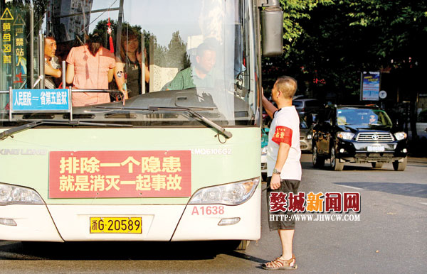 昨天,记者在市区中山路看到,执勤人员正在对站点来往公交车辆进行安全管理。据了解,近期公交集团一线的车队管理人员于每天早上7:30至9:00和下午16:30至18:00的上下班高峰时段,在各个主干道路口站点执勤高峰岗,现场督导和提醒驾驶员集中注意力,高温天气需放慢车速安全行车,并检查车上消防设施、灯光等设备。
