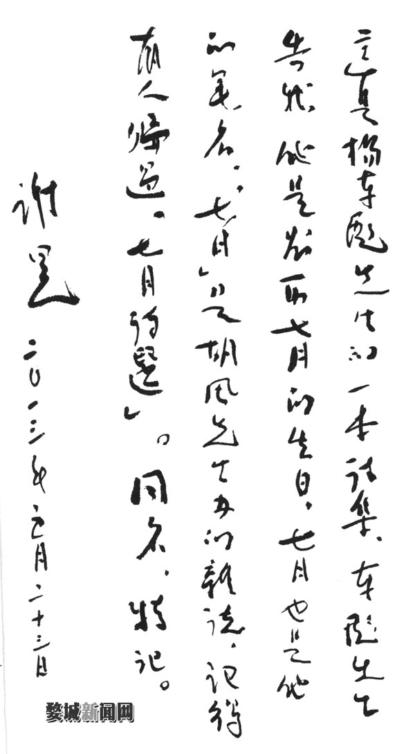 谢冕为《七月诗选》题词