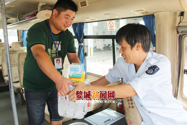 7月26日上午,记者在刚刚落成的金西公交枢纽站看到,金华公交集团城乡客运金西公司一车队正在给奋战在酷暑中的一线驾驶员、售票员、保洁员赠送绿豆汤、矿泉水、毛巾和防暑药品,并叮嘱员工做好防暑降温工作,注意夏季行车安全,让广大员工在酷热中感到一丝清凉。
