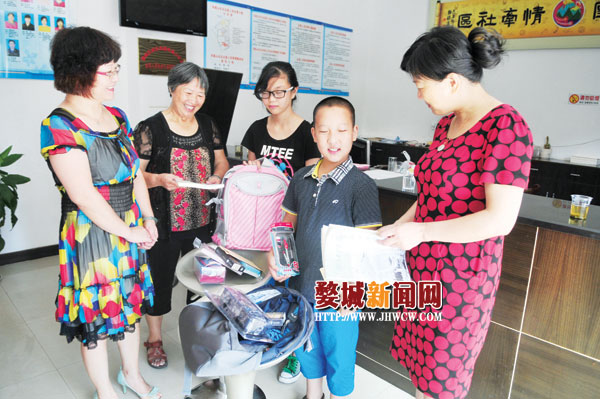 “你的微心愿,我们来实现”,近日,城北街道凤凰山社区开展微心愿征集活动,社区的张馨月小朋友从小由奶奶带大,蔡宇轩小朋友父亲患尿毒症多年,家庭条件都十分困难,孩子们的微心愿很简单:新学期有个新书包。婺城区人力资源和社会保障局的党员们从社区得知后认领他们的心愿并帮助他们圆梦。党员们给孩子们带来了慰问金和新书包,孩子们看到书包里还有文具盒、课外书、笔记本等文具都很惊喜。