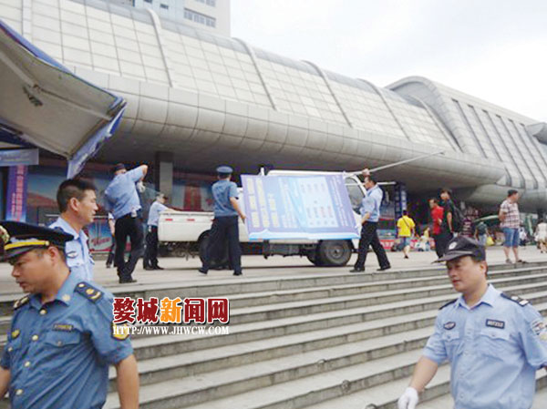 8月2日,金华市站前综合管理办公室联合铁路派出所、运管处、出租车管理处、站前派出所和市行政执法局婺城分局等部门对火车西站站前广场进行了联合整治,共清理广告牌、店外占道20余处,垃圾3车,得到了周边店家和过往旅客的认可和支持。