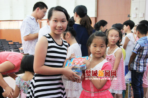 7月30日,在金华对农广播的牵线搭桥下,白龙桥上邵村的邵润叶小朋友结识了市区东苑小学的许耀丹小朋友。许耀丹为眼前这位农村小妹妹赠送了她精心挑选的5本图书,并留下了电话号码,邀请小妹妹到城里来玩。一旁,邵润叶的妈妈高兴地说:“活动的形式很好,希望通过城乡孩子长期的交流,腼腆内向的女儿能变得更加活泼、开心。”
