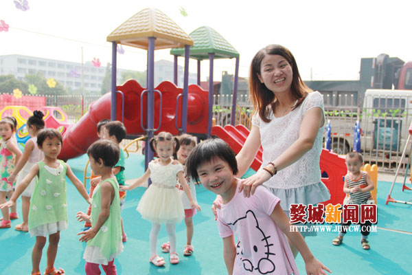 昨日,记者来到了白龙桥楼家幼儿园,中班、大班的40多个孩子正在阳光下唱歌跳舞做游戏,一旁瘦瘦条条的园长尹敏开心地与孩子一道跳舞,眼中充满着慈爱。尹敏说:“幼儿园里的孩子就像是我自己的孩子一样。”