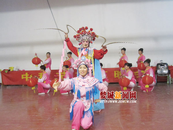 7时30分,一曲铿锵有力的《开门红》拉开了晚会的序幕。只见,身穿红色舞服的妇女,热情洋溢地舞动起来,一旁,由村里老中青三代人组成的乐队欢快地伴奏。紧接着,临江婺剧团演奏了婺剧经典曲目《杨八姐游春》,村里的婺剧爱好者也演唱了喜闻乐见的《送凤冠》、《三娘教子》等经典婺剧唱段。村民们都说,大饱眼福。而接下来的演出曲目《樊梨花》更是精彩绝伦,演员声音高低自如,韵调跌宕起伏、甜绵顺耳,就像陈年老酒甘甜醇厚,回味无穷,把整台晚会推向高潮,台下掌声不断。
