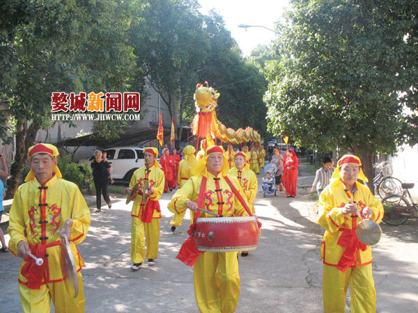 舞龙队围着社区转圈,经过社区主要道路、医院、菜场,后面跟着一群忠实的粉丝,不少居民拿着相机、手机,记录下这群斗志昂扬的舞龙者。13岁的何海燕拿着数码相机,一直跟随舞龙队,忙得不亦乐乎。她说:“我外婆今年59岁了,她也是其中一名舞龙者,可厉害了。”外婆范爱仙则说,参加舞龙活动能够锻炼身体、娱乐开心,和这群老伙伴待一起排练,生活更充实了。途经中国水利水电第十二工程局医院时,在医生护士强烈的“围着医院绕一圈”的呐喊声中,黄龙在医院院子内飞腾而跃、追逐宝珠。住院部的病员们一起“拦”下了舞龙队,双手轻轻抚摸龙头,沾沾喜气。