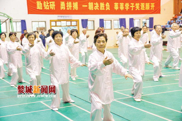 为了巩固小康型老年体育示范村(社区)创建成果,进一步推广太极拳项目,10月19日上午,婺城区老年体协在五中体育馆举行城区及周边乡镇太极拳展示活动,参加展示活动的有城区五个街道、六个周边乡镇、两个区直机关组织的代表队,共420余名运动员参加。