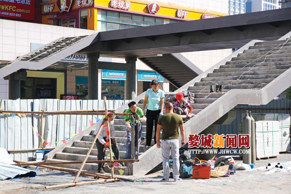 近日,记者在西市街和解放东路交叉路口看到,天桥的主桥部分和两侧的上下楼梯已经搭建好了。据了解,人行天桥预计在10月底竣工。今后,逛完西市街,想去对面的银泰城转转,就可以从天桥上通行了。