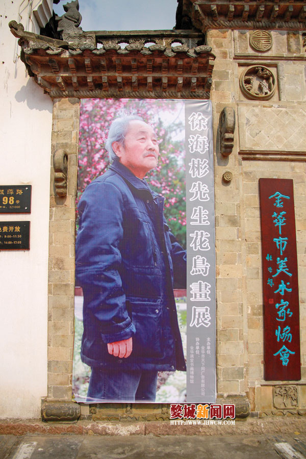 徐海彬,号白鹤山人,1933年出生于浙江金华兰溪,他自幼酷爱绘画,稍长师从画坛名宿金鸣秋先生,专攻花鸟,后拜山水名家余任天先生门下,临摹遍古近画谱从海上画派上溯到明清宋元,传统的笔墨功力已臻上乘。骨线用笔,随类赋彩,得心应手,娴熟自如。然而,他并不以一个熟练的画工为满足,而是接受潘天寿“继承、变革”的观点,以承求草,传统出新。为此,他以造化为师,对鸟类飞鸣食宿作了长达四十年的观察体悟。史传黄子久为画山水,常终日枯坐在山滨水涯写生,石涛亦“搜尽奇峰打草稿”,海彬先生的写生稿,可以说是积箱盈架,并练就了一套默记背写的工夫。近日,徐海彬个人花鸟画展在金华满堂书院隆重开展,展厅内100余幅花鸟作品再构图、造型、设色上都有独到之处,栩栩如生。徐老先生身为兰溪人,为何结缘婺城,要把自己的回乡个人展放在婺城是有原因的。其实,早在20年前,徐老先生就结缘婺城,在当时举办了个人首个画展,地点就在婺城区的黄宾虹公园内,这次,20年后徐老先生依然把画展放在婺城。