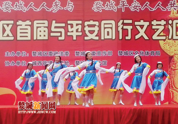 平安婺城人人参与,婺城平安人人共享。11月1日下午,婺城区首届“与平安同行”文艺汇演活动在市区沃尔玛广场举行。活动中,由新狮街道的文艺表演队带来的舞蹈节目《吉祥颂》,赢得了现场观众的阵阵掌声。