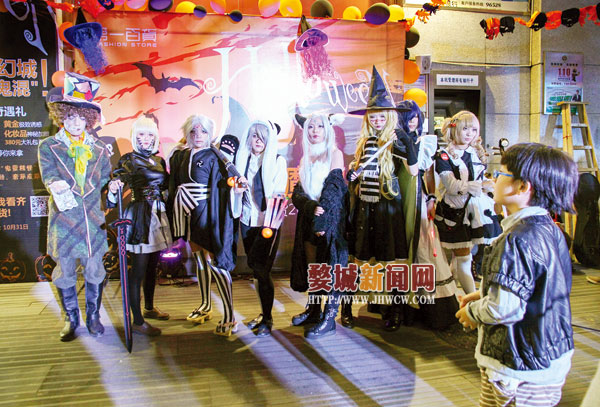 万圣节是西方传统节日,如今,婺城的时尚达人也以自己的方式演绎起了这个洋节日,各式各样的化装舞会、面具Party,让市民感受到了浓郁的西方风情。图为西市街上,一群“鬼灵精怪”展示着cosplay的风采。