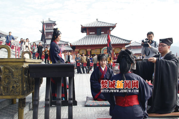 第二天,活动主办方还在横店影视城华夏文化园景区举行了传统礼仪展示,包括传统拜师礼、传统的女子成人礼——笄礼、传统婚礼展示、传统射礼等礼仪,一展华夏“有礼仪之大”的文化内涵。