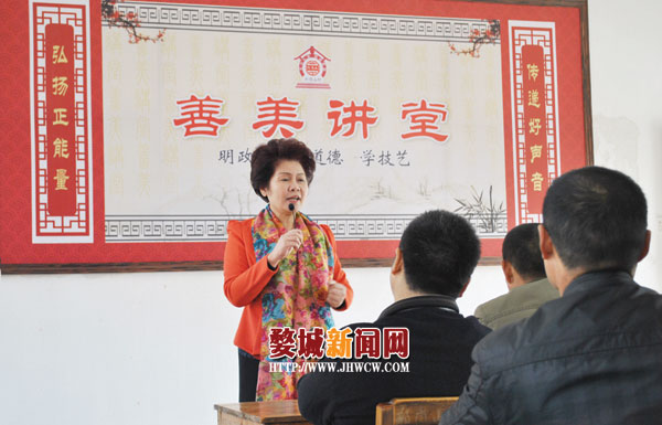 11月15日上午,在白龙桥镇郑岗山村的“善美讲堂”里,传来了一阵阵掌声和笑声。原来,15日是郑岗山村每月一次的党员活动日,据村支书郑振民介绍,这次举行的党员会议跟以往的很不一样,村里特别请来了区委宣传部的退休干部魏丽来给大家授课。