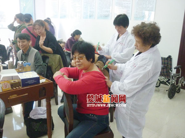 近日,金华老年大学医学班的学生们走进市区城西街道双龙社区为辖区居民开展义务服务。有量血压、拔火罐、针灸等项目。活动的开展得到了不少居民的好评,大家纷纷报名加入义务服务队。