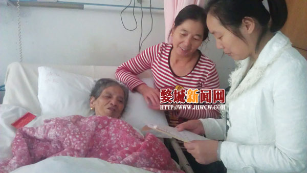 近日,市区城北街道郑岗山社区工作人员看望了因病住院的企业退休人员郑兰香。