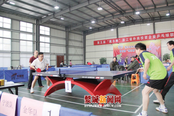 11月23日至24日,由省外商投资企业协会主办的第五届“戴尔杯”浙江省外商投资企业乒乓球联谊赛在万里扬变速器股份有限公司举行。来自杭州、宁波、金华、衢州等地的八支代表队,在万里扬文化活动中心里进行了男女单打、团体赛的激烈角逐,最终,金华万里扬代表队取得了团体赛和男子单打两项冠军,女子单打冠军由省商务厅代表队获得。