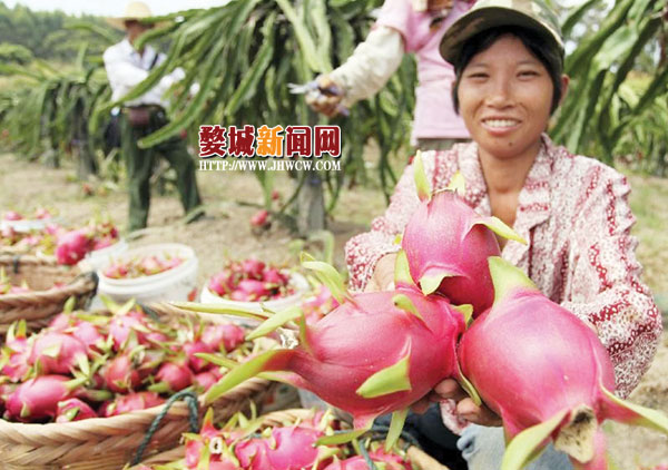 昨日,白龙桥镇让长村的村民黄师傅给记者展示了刚刚采摘下来的火龙果。黄师傅说,受天气影响,今年的火龙果比往年要晚熟,最近进入了采摘高峰。“从外地引进的优质火龙果品种以及先进的种植管理技术,使今年的火龙果产量和质量都有所提升,还有不少市民相约前来采摘新鲜的火龙果。”黄师傅开心地忙碌着。