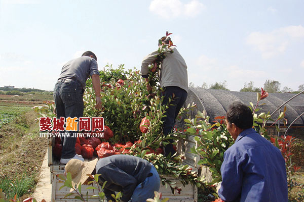 “小心,绑好了。”11月22日一大早,白龙桥天姆山村的红叶石楠销售户徐师傅就开始指挥工人装车。“今天要装4车,主要发往江西、湖南等地。”徐师傅指着满满的一车苗木对记者介绍道, “我们村是以苗木种植为主,秋季对苗木市场来说是一个不可多得的销售旺季。很多地方都要赶在冰冻之前把苗木种下去,因为这段时间苗木的存活率高。”记者一路走来,见到不少苗木户正挑着苗木向货车里运送。据介绍,这几年红叶石楠的走势都比较低迷,但今年下半年行情好转,11月份尤为畅销。见习