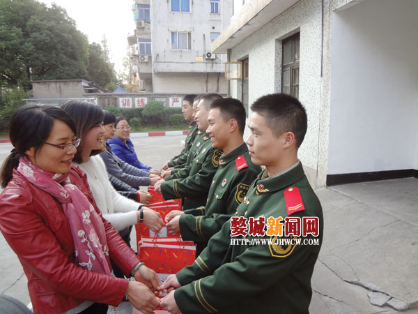 近日,市区城中街道杨思岭社区工作人员和社区居民一起,来到武警市支队警通中队驻地,慰问30名退伍老兵,感谢他们为社区建设做出的贡献,并向他们送上慰问品。