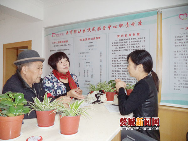 近日,城中街道西市街社区新装修的365便民服务中心启用,来社区办事的居民,都能享受到微笑、温馨的服务。