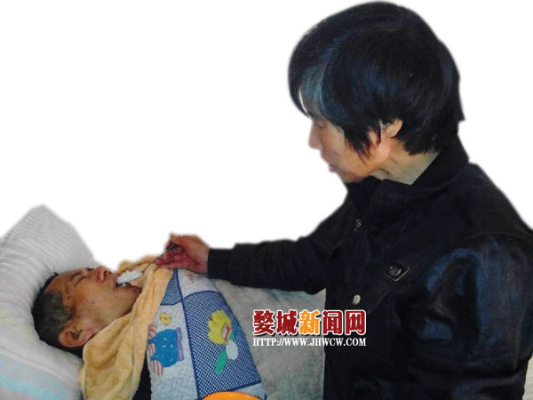 无奈之下,章爱球选择在金华中心医院接受保守治疗。令她感到欣喜的是,丈夫竟然慢慢有了好转,住院十多天后,人看起来清醒了,甚至能够开口发出“啊啊”的声音。一个多月后,医生表示,邱来发病情已经稳定,建议出院。没想到,出院还不到20天,邱来发再次发病。尽管对他的病情,医生已是一再摇头,章爱球却不愿放弃,一再要求全力医治。显然,医生也已无力回天,再次住院一个多月后,邱来发病情有所稳定,但他已经成了一个无法言语、没有行动能力的“废人”。