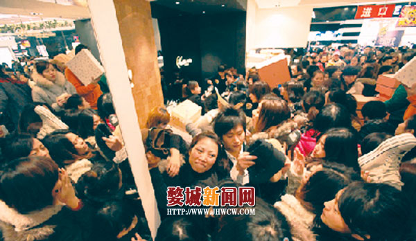 市民徐先生就是这样一位“好丈夫”,不仅忙中抽空陪妻子到杭州“血拼”,当天还任劳任怨地排队买单。“那天早上,商场的门一开,我就和老婆随着人流冲了进去。先逛、后买、再结账、最后换商场‘刷就送’的抵金券。我足足排了3个小时,给衣服买了单,又足足排了3个小时,去领返金券。辛苦拼搏一天,才突出重围,满载而归,腿都快累断了。”想起当时的情景,徐先生还是“心有余悸”,为了购物,他连中饭也没顾得上吃,“个个都跟买东西不要钱似的横冲直撞,太可怕了。”