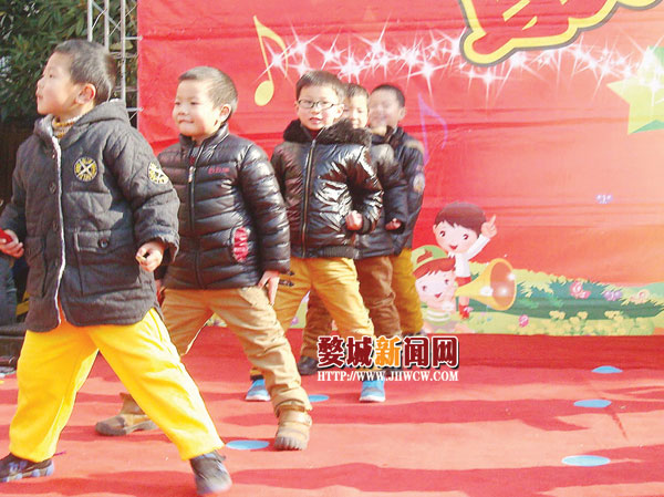元旦前夕,青春东区幼儿园的孩子们同市区通园小区的居民们共庆元旦。
