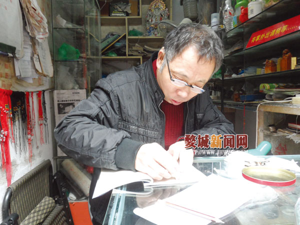祝建民说,他曾先后开过修表铺、做过油漆工等,因种种原因不得不放弃了。“自己身体不好,给人打工也赚不了几个钱,想有个一技之长赚钱养家。”祝建民说,因为他从小就雕刻十分感兴趣,工作的几次“转型”失败后,他开始自学雕刻,最终他开了如今这家“聋人雕刻”店。