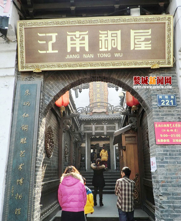 我一个人且行且看,漫无目的,忽然一个短巷子里一个仿古门楼出现在我的面前,尤其引人注目的是一块竖直的牌匾,金光闪闪四个字:“江南铜屋”。心里顿时好奇,莫非门楼里面有座全部铜结构的房子,倒是很想进去看个究竟。入得门去,居然迈不开步子了。