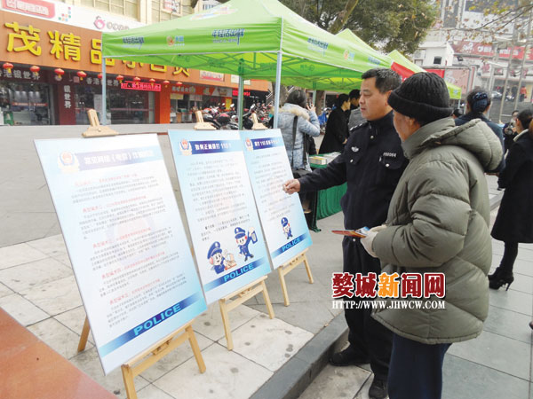 1月10日上午,婺城公安分局巡防大队配合市局指挥中心,与消防支队等单位共同在人民广场开展“1·10”宣传活动,通过现场讲解、分发宣传手册、展示宣传资料等方式,向群众宣传介绍了防盗抢、防诈骗、防传销等生活防范常识内容。