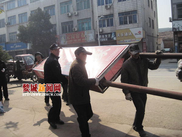 日前,在乾西乡党委政府的大力支持下,行政执法乾西中队针对辖区金兰中线长湖路沿街商家未经审批随意悬挂、张贴广告,占道摆放灯箱行为展开整治。通过此次整治,共清理金兰中线一环至二环段沿街广告牌、灯箱160余块,跨街横幅18条。